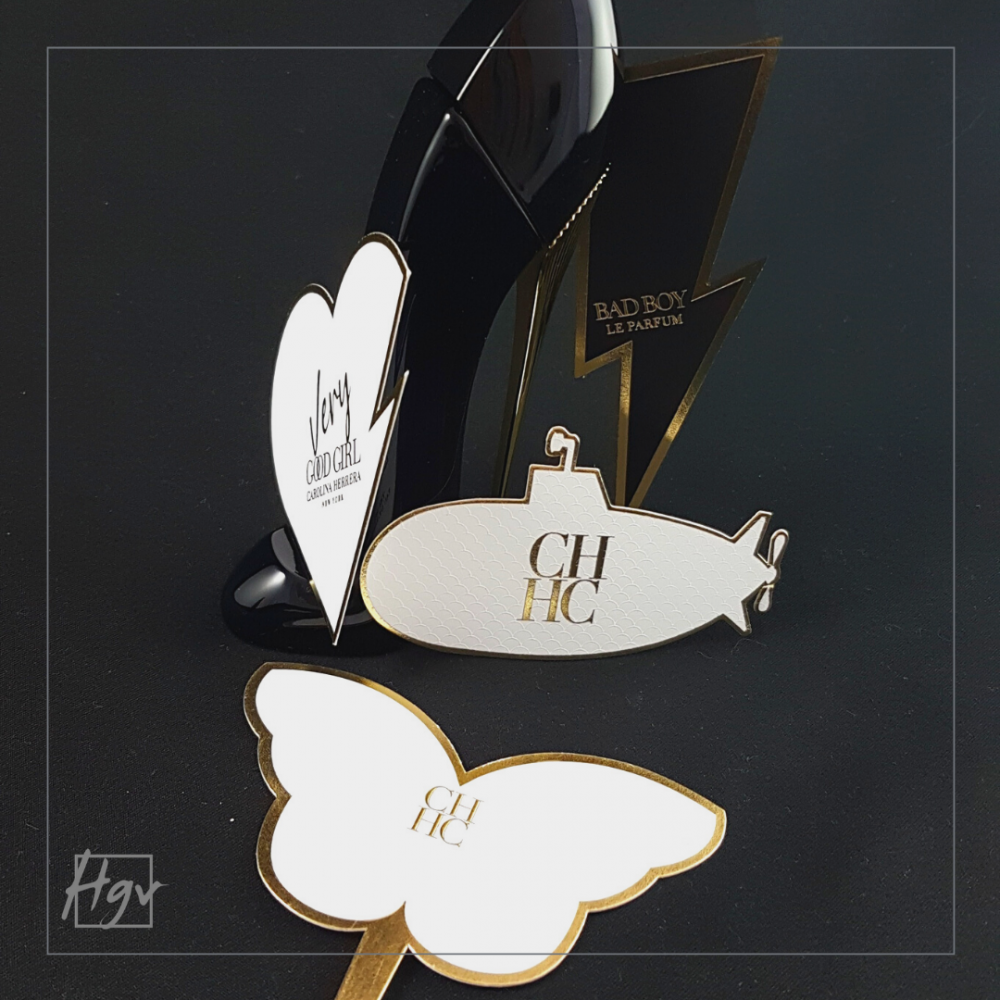 - Gaufrage : Gaufrée, la touche olfactive prend du relief. Elle conjugue la qualité du rendu olfactif et l’esthétique du support. Le gaufrage est associé à la dorure pour cette marque !